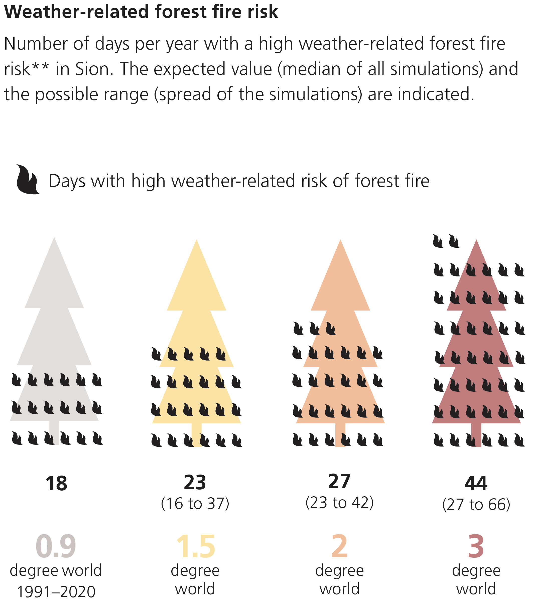 On November 4, MeteoSwiss published updated climate scenarios for Switzerland. The scenarios describe the expected changes in the climate in Switzerland under an increase in global warming by 1.5, 2 and 3 degrees respectively (Global Warming Level (GWL)) compared to the reference period 1991-2020. The timing if and when these GWLs are reached depends on the specific climate scenario considered.