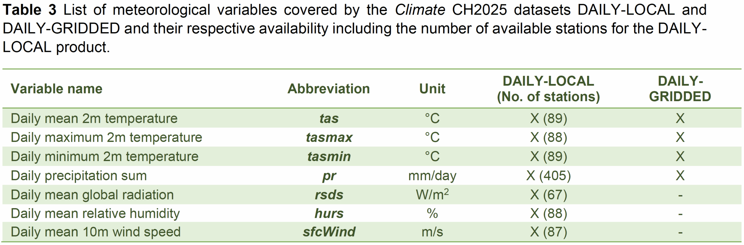 - 1km×1km gridpoints in Switzerland (DAILY-GRIDDED)